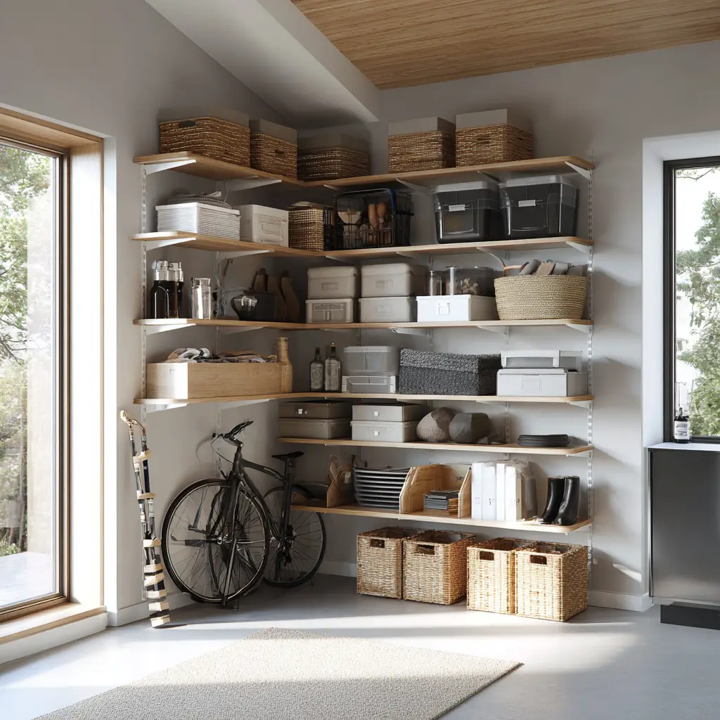 Corners often go unused in garages. Install custom corner shelves to store boxes, power tools, or hardware. It’s a great way to make use of every inch of available space.