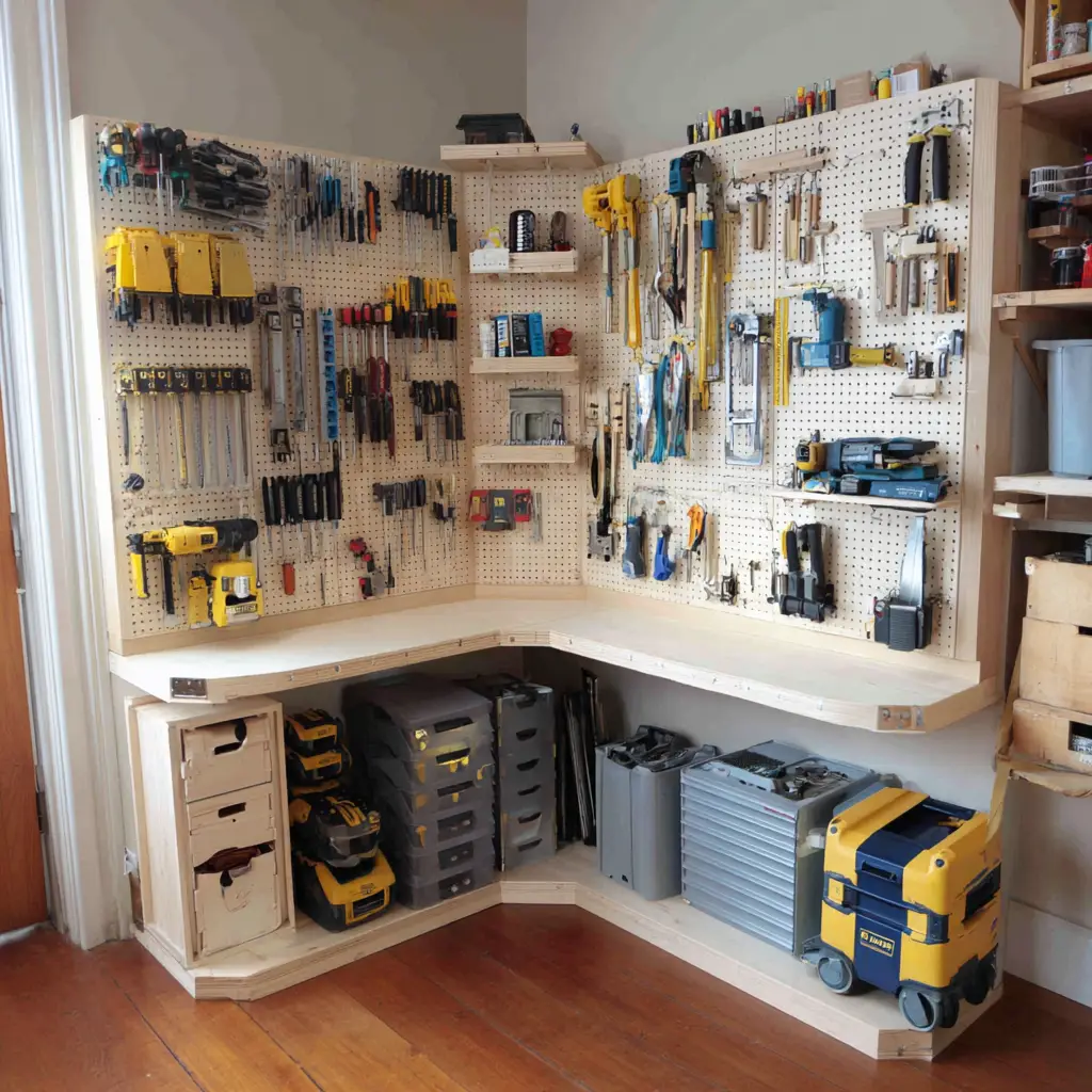 If you have an unused corner, transform it into a tool zone. Add vertical racks, hooks, or even PVC pipes to hold various tools upright and organized. This keeps the main garage area free from clutter while giving your tools a dedicated spot.